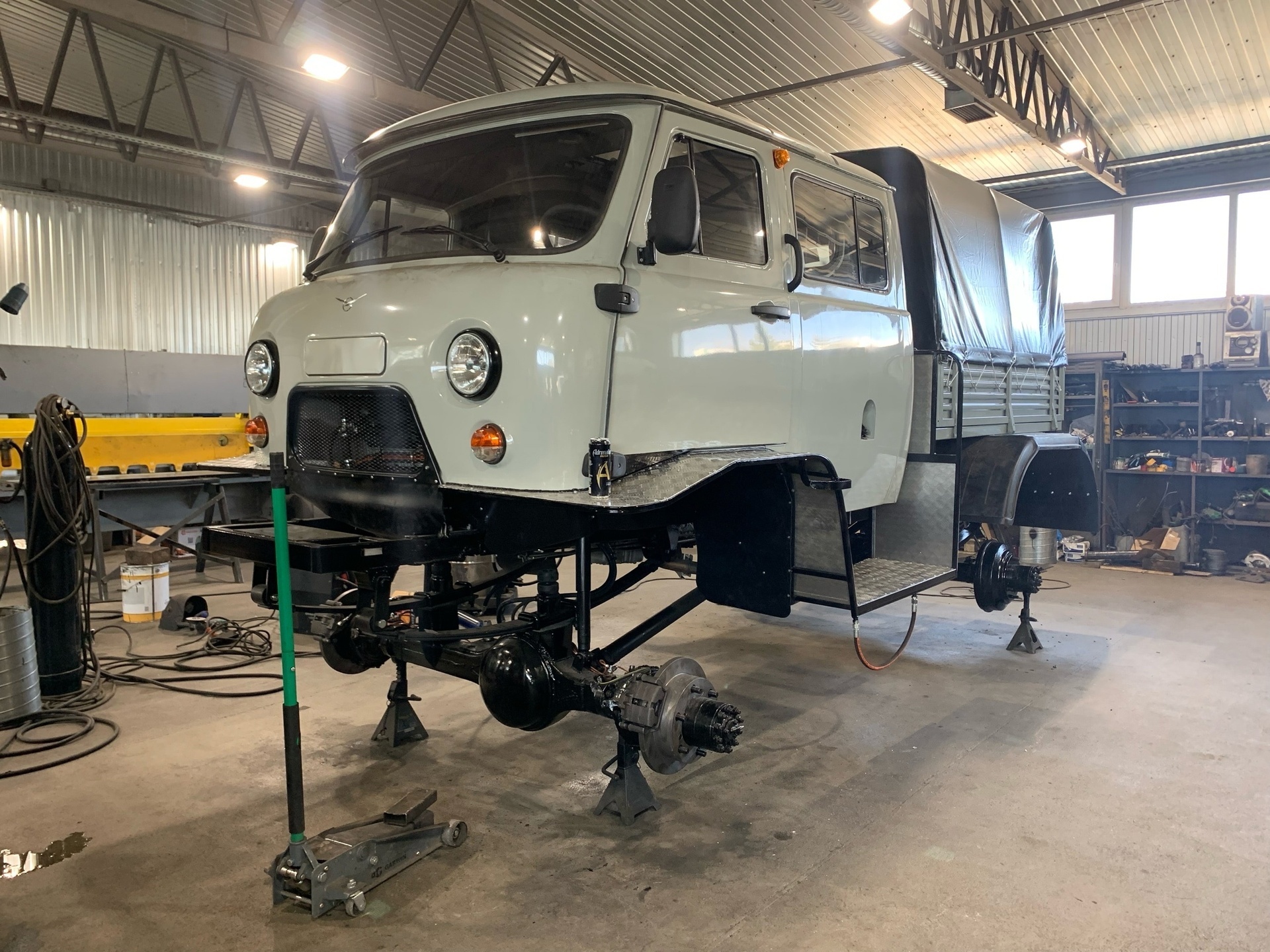 В основе конструкции классический УАЗ - Фермер с пятиместной кабиной и грузовым кузовом.